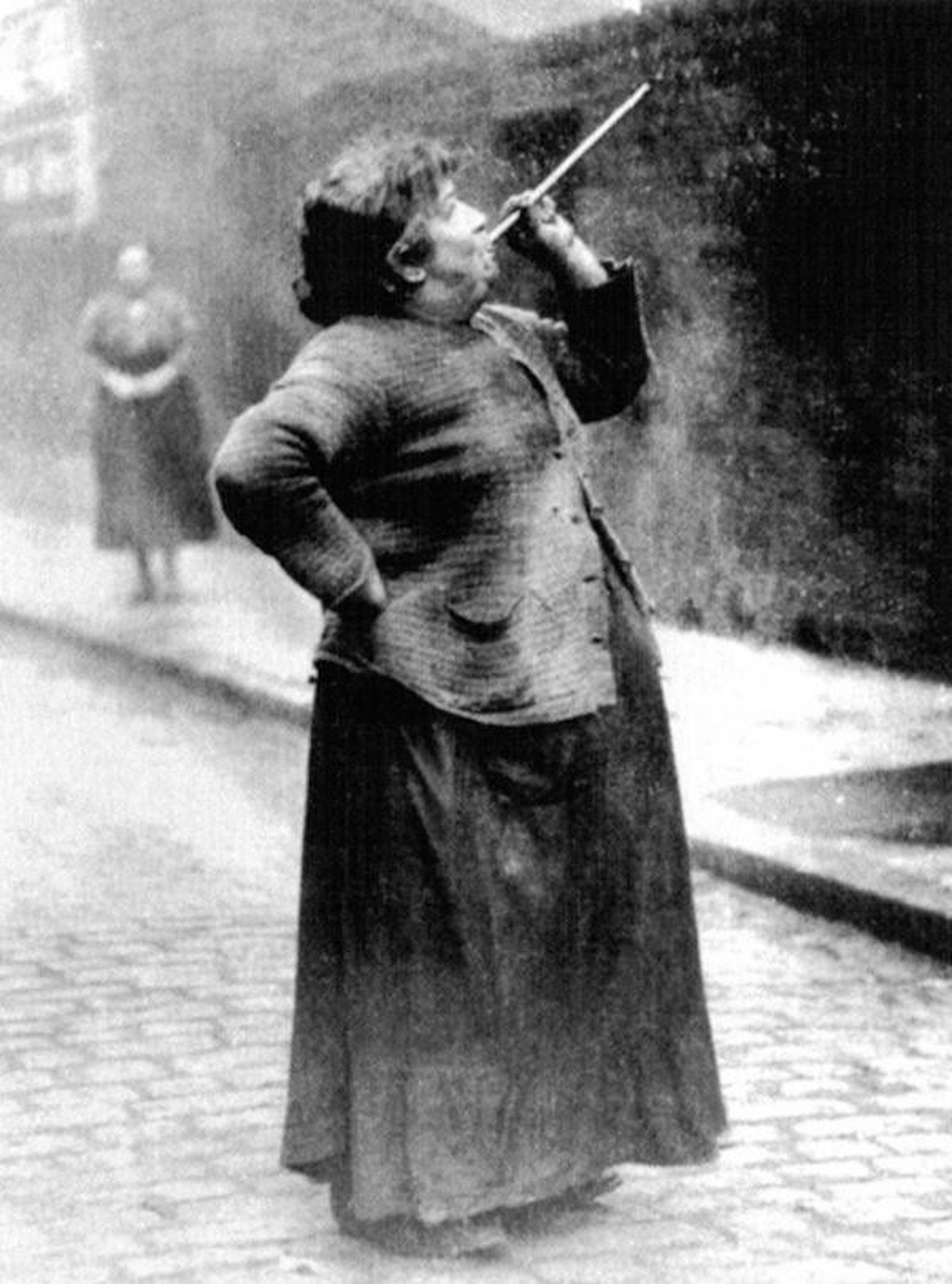 Weiblicher Knocker-up mit Blasrohr.