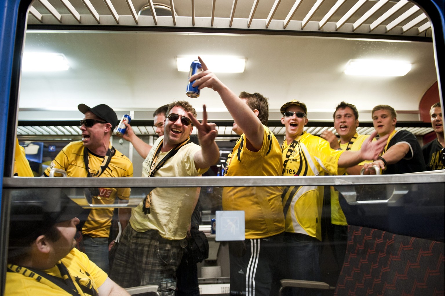YB-Fans lassen es sich im Extrazug gut gehen.