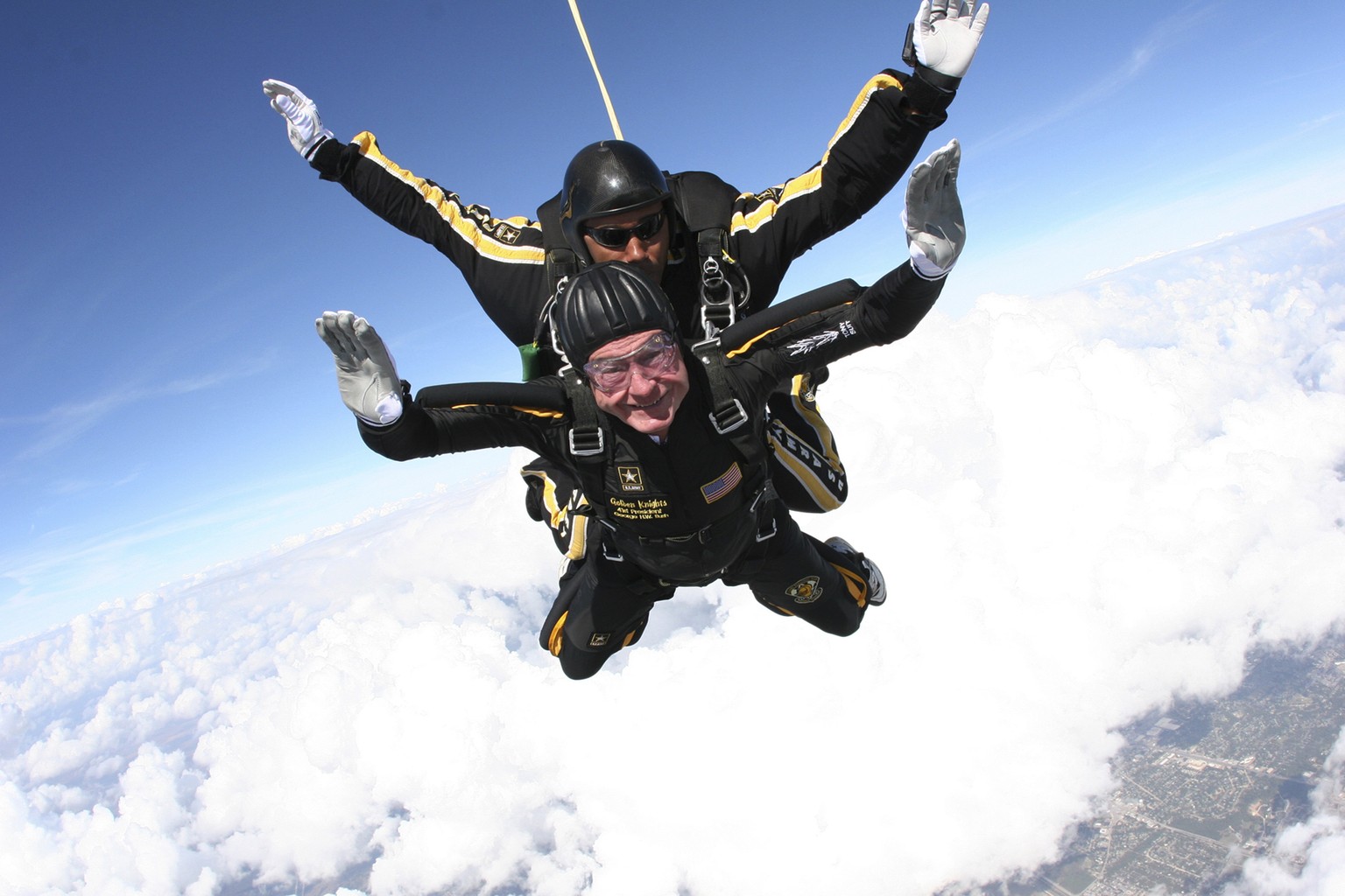George H. W. Bush bei einem Tandem-Sprung mit einem Mitglied der