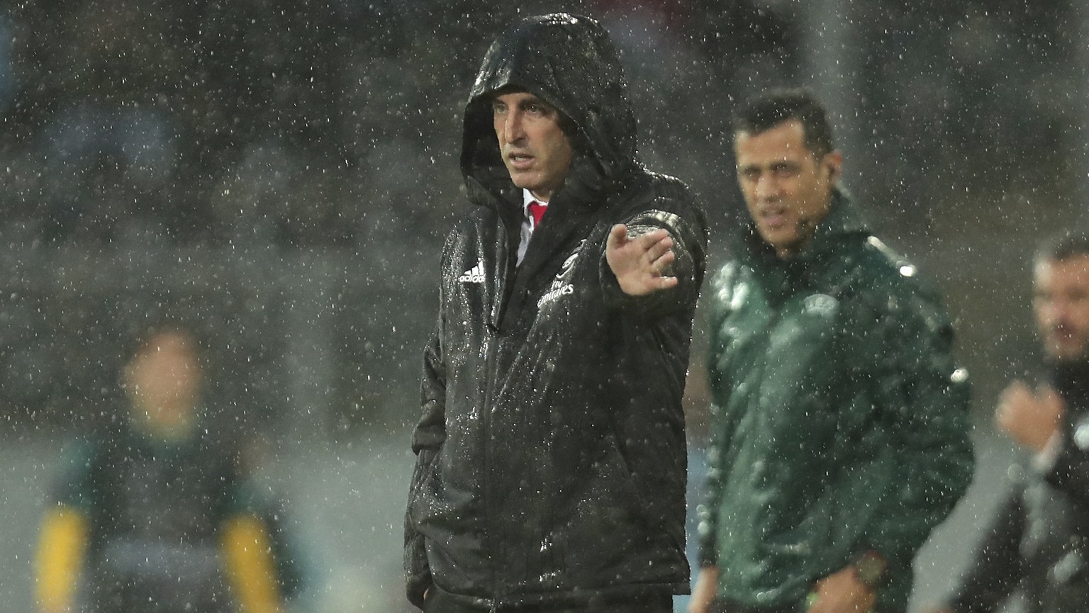 Unai Emery steht mit Arsenal im Regen.
