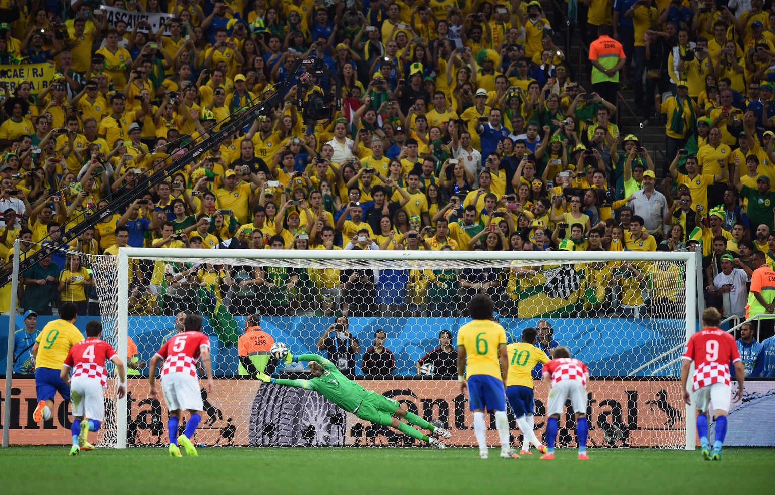 Goalie Pletikosa ist noch dran, kann aber Neymars Penaltytor nicht verhindern.