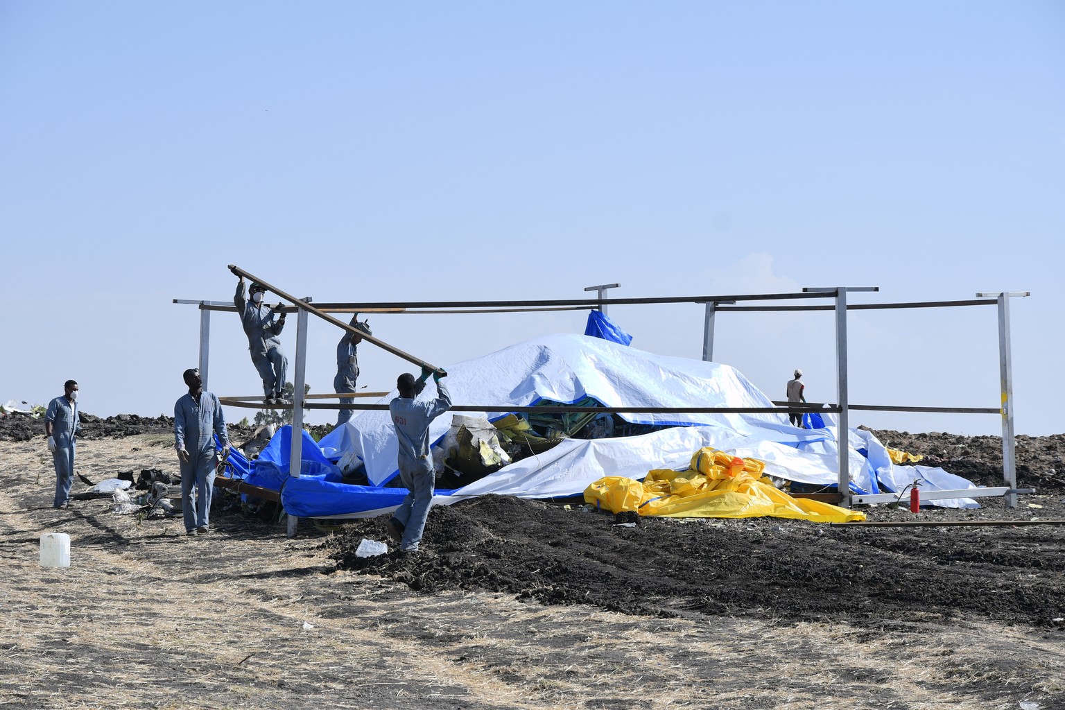 Experten bei Arbeiten an der abgestürzten Boeing 737 Max 8.