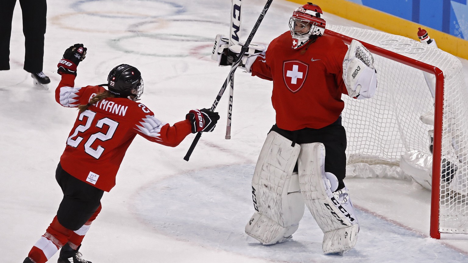 Captain Livia Altmann jubelt mit Torfrau Florence Schelling.