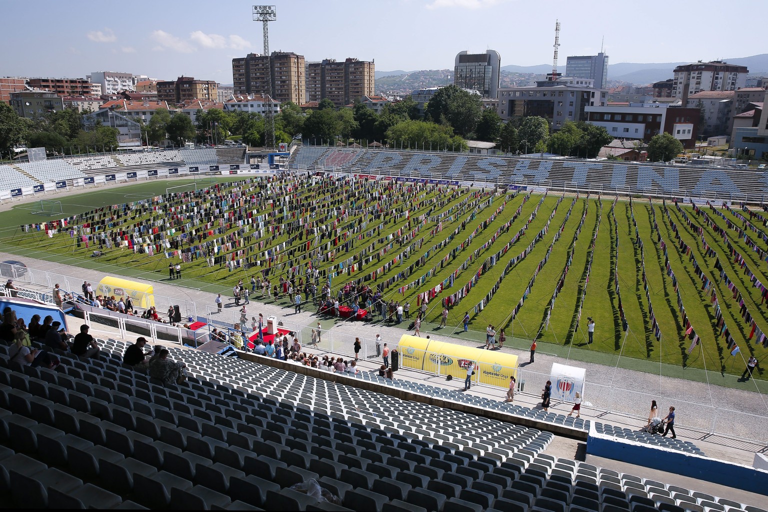5000 Kleidungsstücke an der Wäscheleine erinnern an die sexuellen Übergriffe während des Kosovo-Krieges.