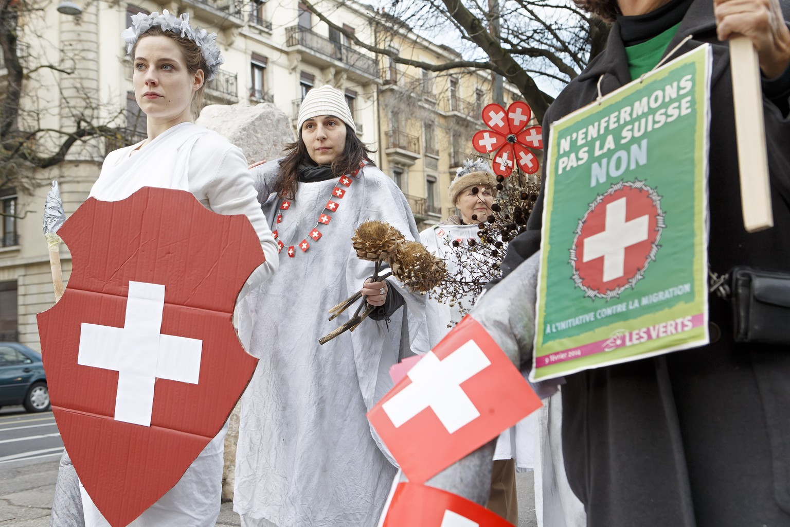 Schweizerisch und doch ungeliebt: Demo gegen die Zuwanderungsinitiative am 7. Januar 2014 in Genf.