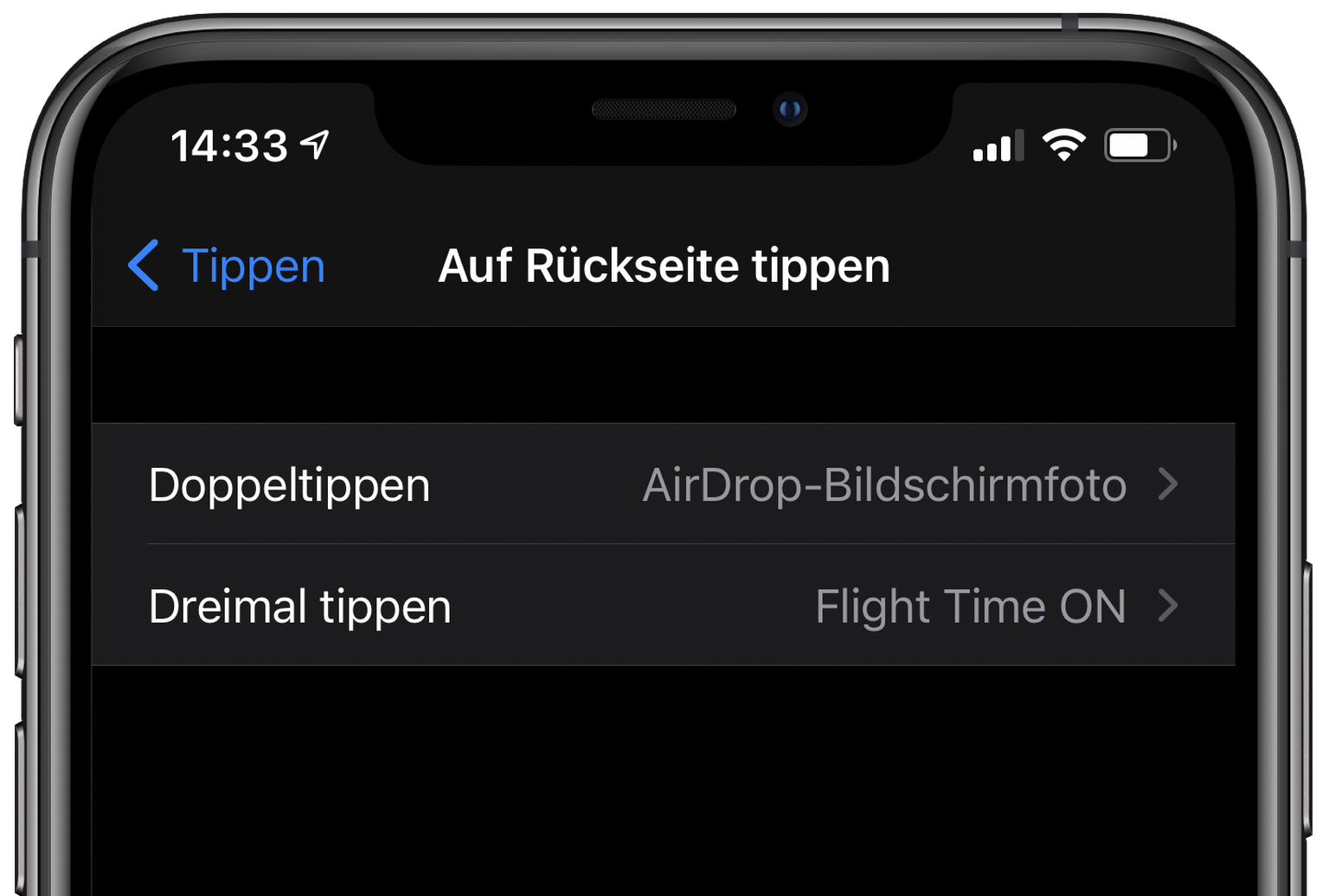 Zweimal aufs iPhone-Gehäuse tippen, um einen Screenshot zu erstellen und über AirDrop zu teilen.