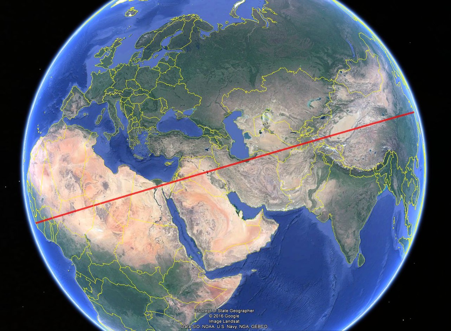 Fadengrad von Westafrika nach Ostasien.