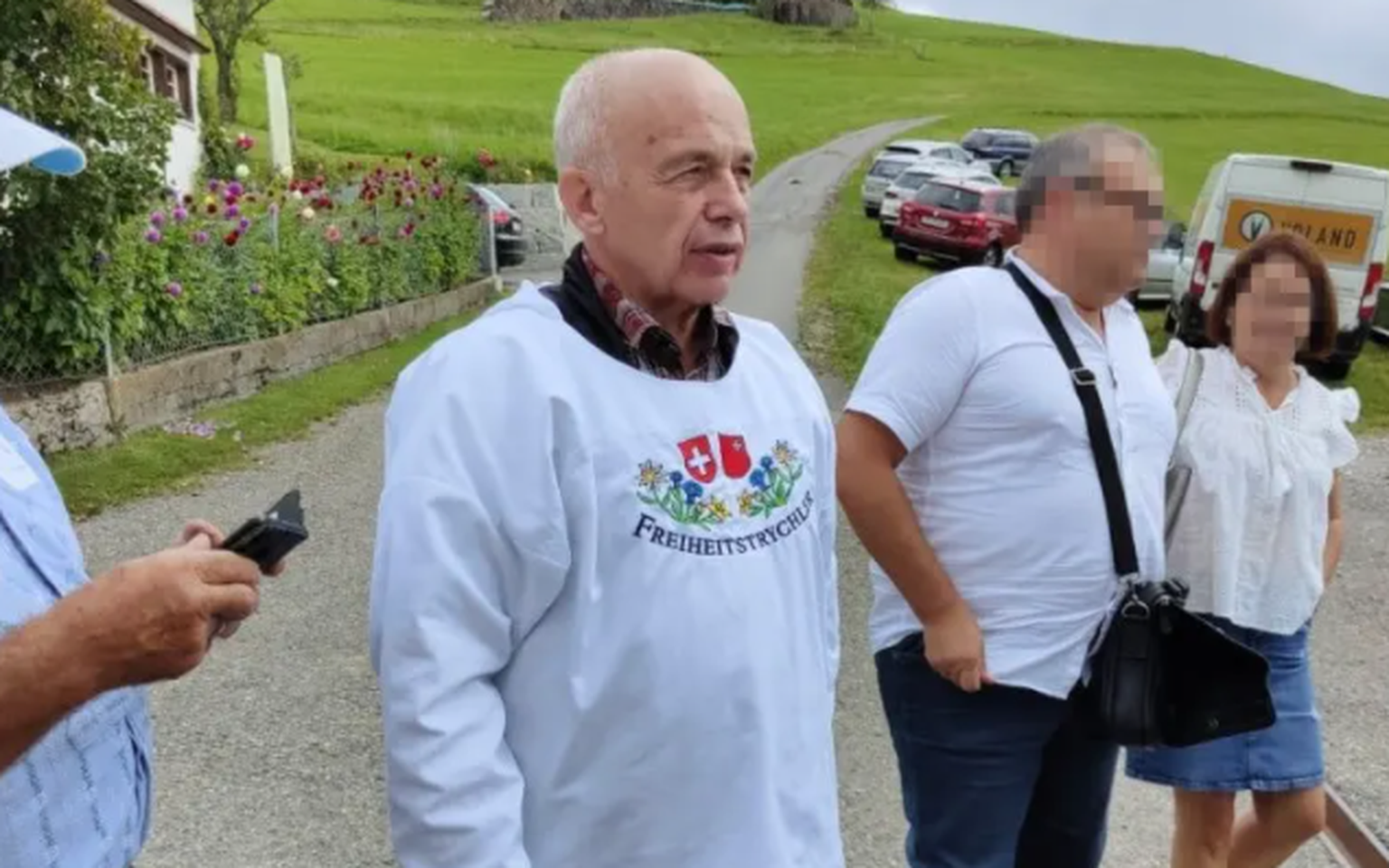 Bundesrat Ueli Maurer am vergangenen Sonntag in einem Hemd der «Freiheitstrychler» in Wald im Zürcher Oberland.