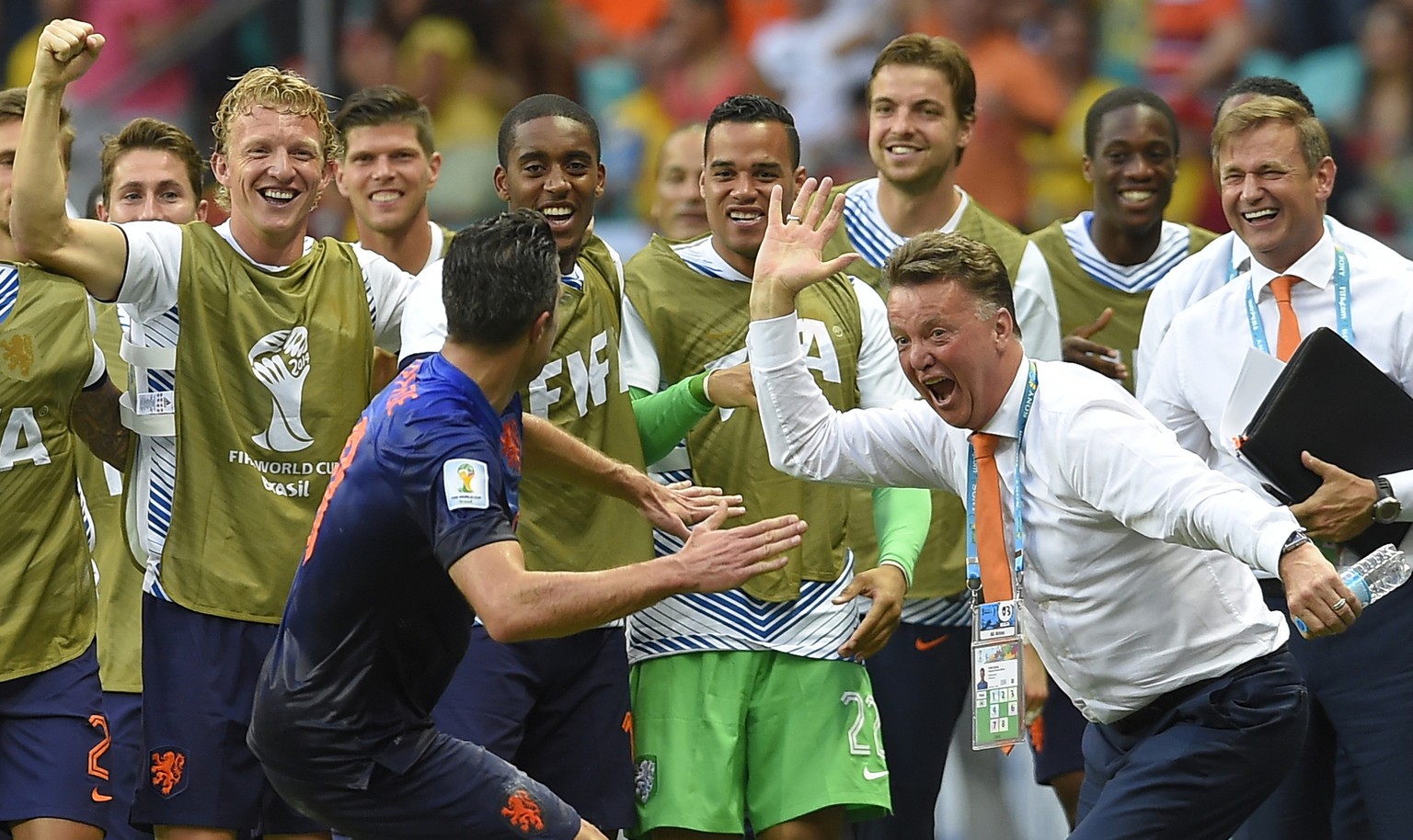 Baumeister van Gaal und Doppeltorschütze van Persie klatschen ab: Der Plan ist aufgegangen.