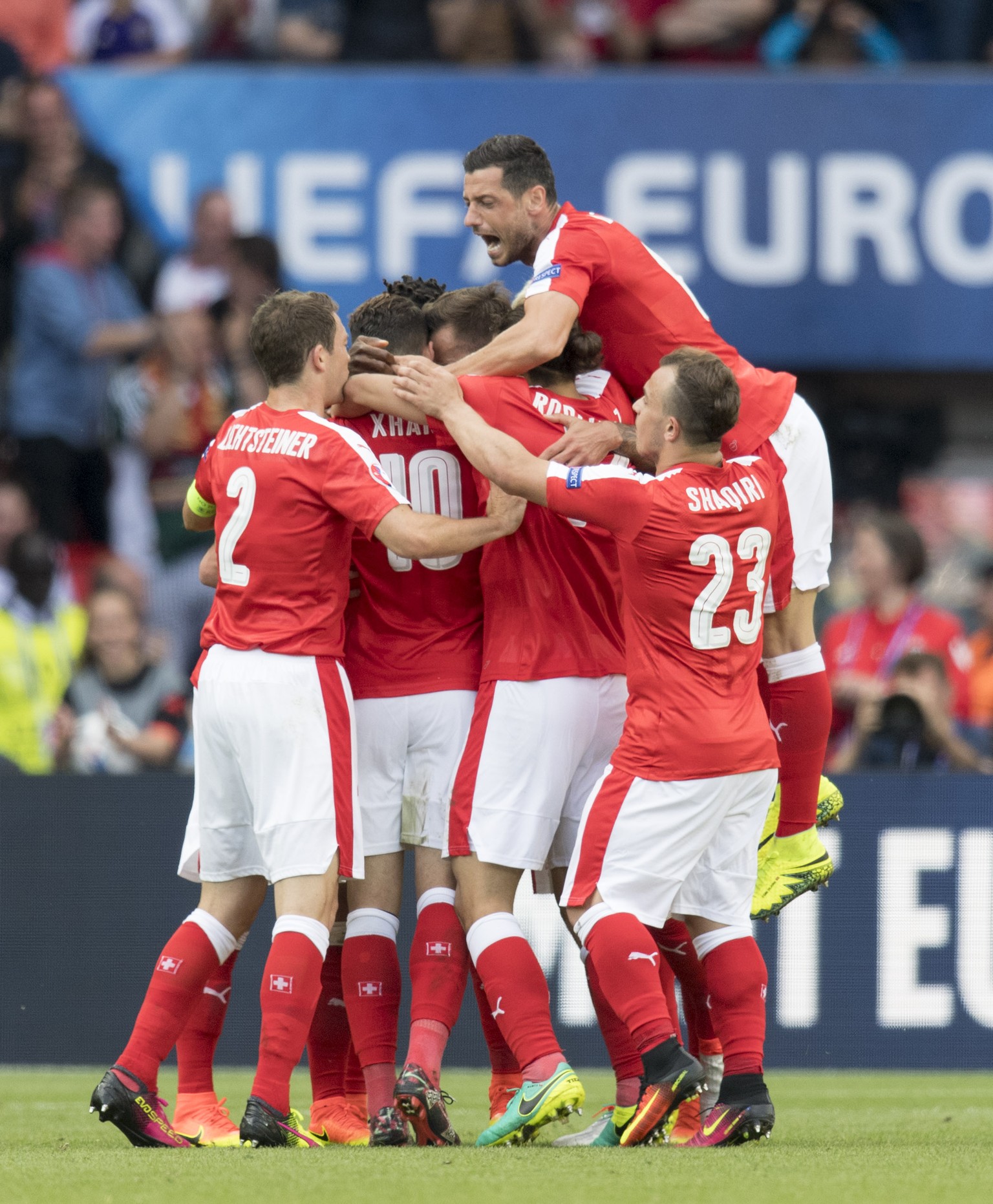 Dzemaili stellt sicher, dass Torschütze Mehmedi nicht entkommt.