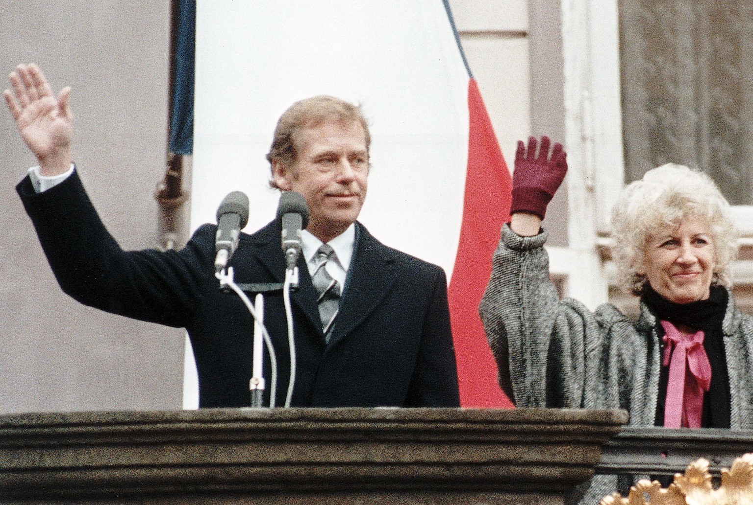 Václav Havel und seine Frau Olga auf dem Balkon der Prager Burg.