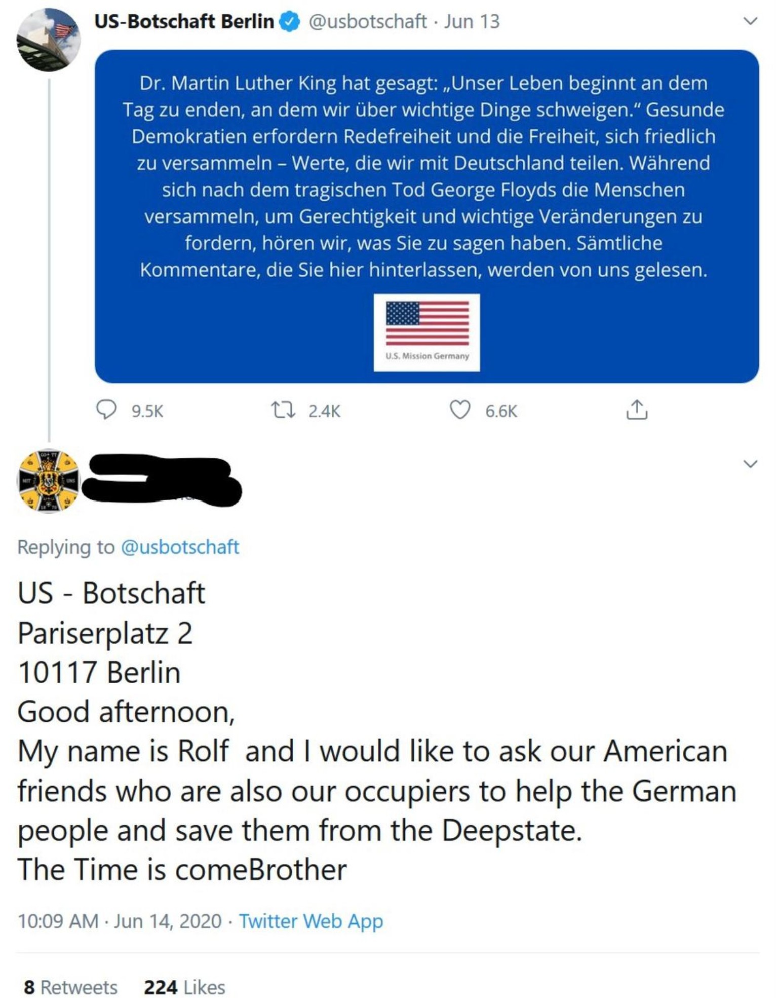 Die US-Botschaft in Berlin bekam Tausende solcher Tweets.