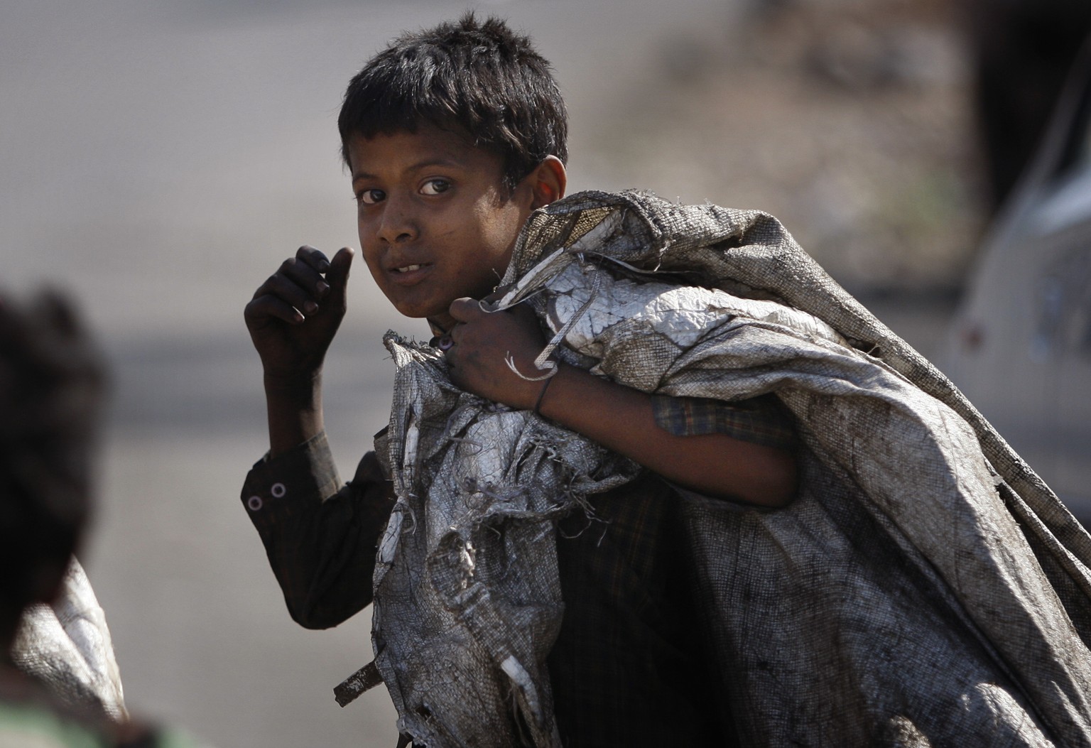Ein indische Junge verdingt sich als Lumpensammler