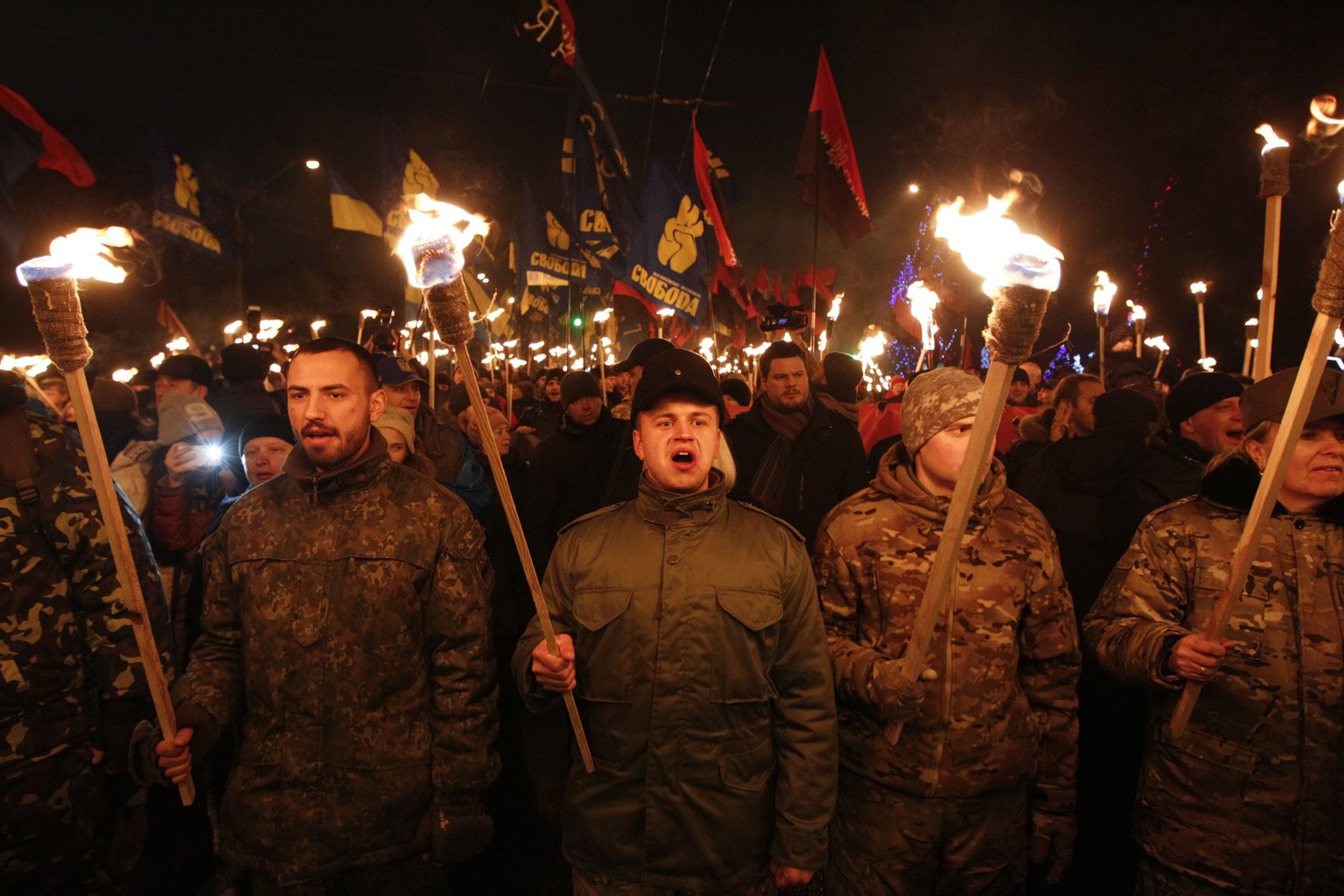Fackelzug von Swoboda-Aktivisten zu Ehren von Stepan Bandera.