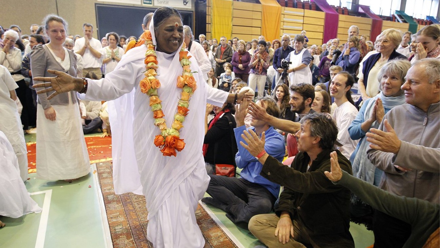 Die «heilige Mutter» und Umarmerin Amma bei einem Auftritt in Winterthur.