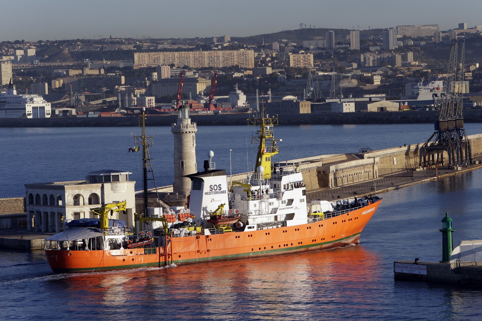 Das Seenotrettungsschiff «Aquarius» fährt am Donnerstag in den Hafen von Marseille ein.