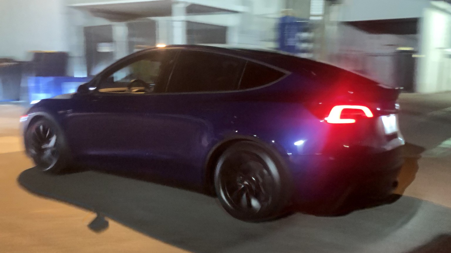 Und so sieht das Model Y aus – wenn es bei Dunkelheit vorbei fährt.