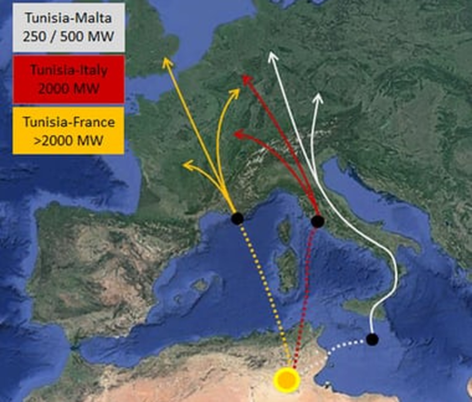 Mittels Unterwasser-Stromkabel soll Solarenergie von Tunesien nach Europa geliefert werden.