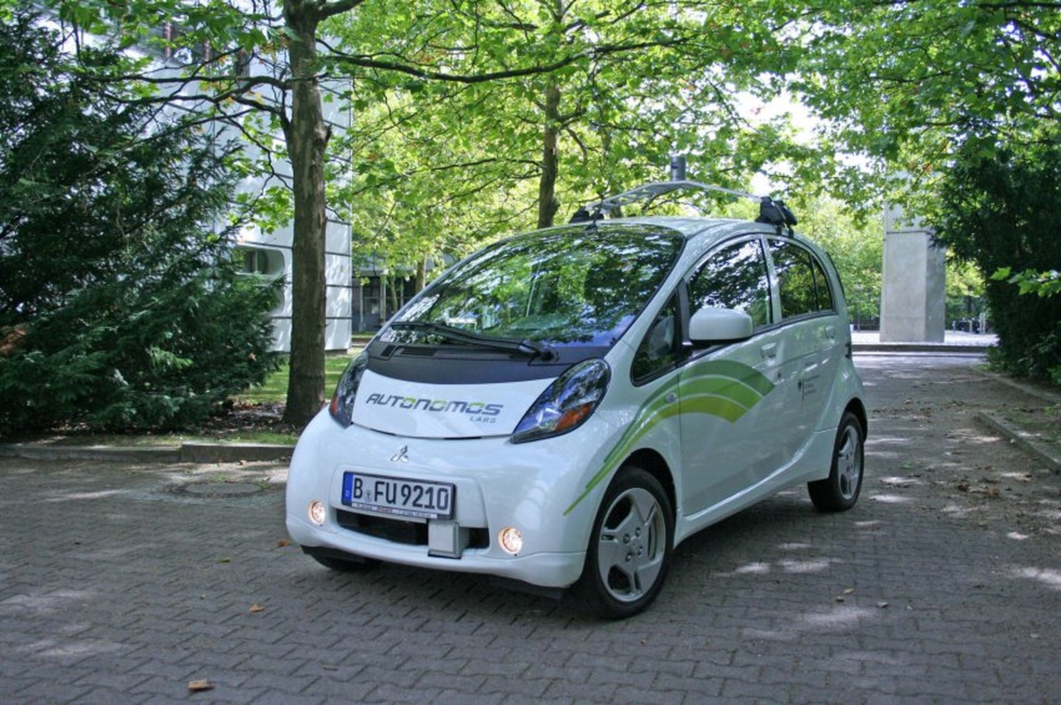 Es handelt sich um einen modifizierten Mitsubishi iMiEV, ein Fahrzeug mit Elektroantrieb.