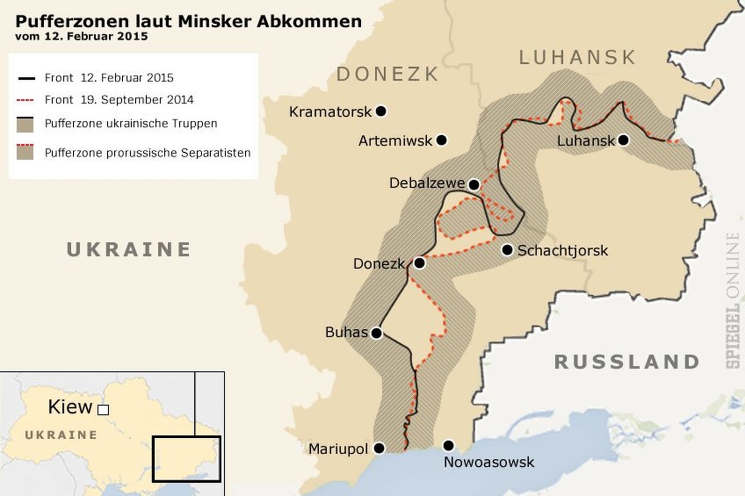 Pufferzone nach Minsker Abkommen zwischen ukrainischen Truppen und prorussischen Separatisten am 12. Februar 2015.