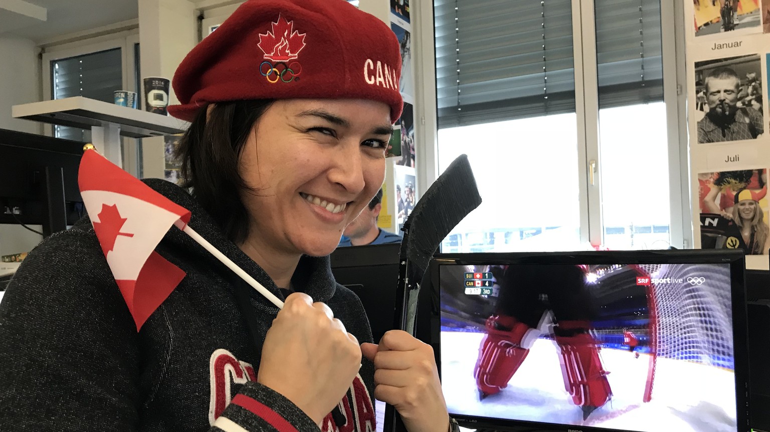 Wenigstens sie ist happy: Unsere Lieblingskanadierin auf der Redaktion, Emily.