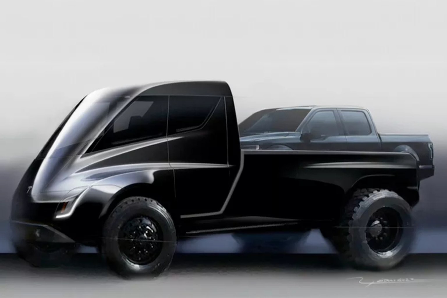 Ein frühe Konzeptzeichnung, die Tesla bei der Präsentation des Tesla Trucks gezeigt hatte.
