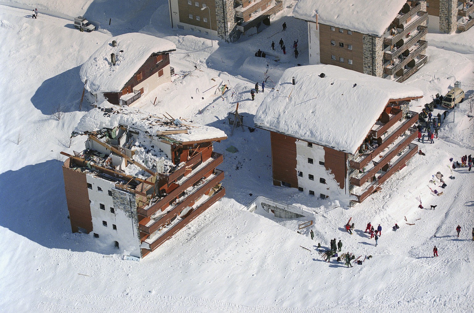 Der oberste Teil eines Mehrfamilienhauses in Leukerbad wurde am 25. Februar 1999 vom Luftdruck einer gewaltigen Staublawine zerstört.