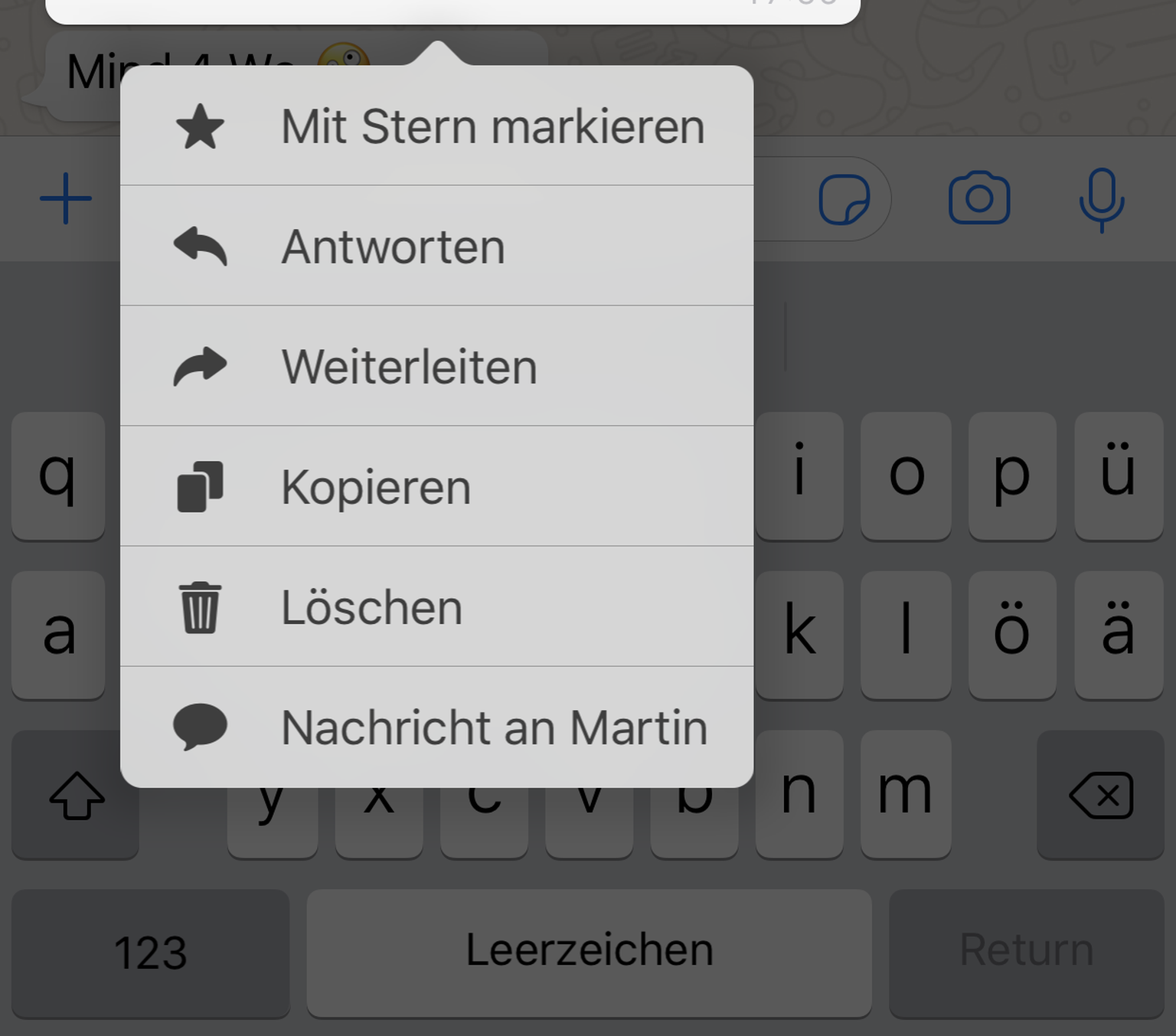 So sieht das Kontextmenü auf dem iPhone aus.