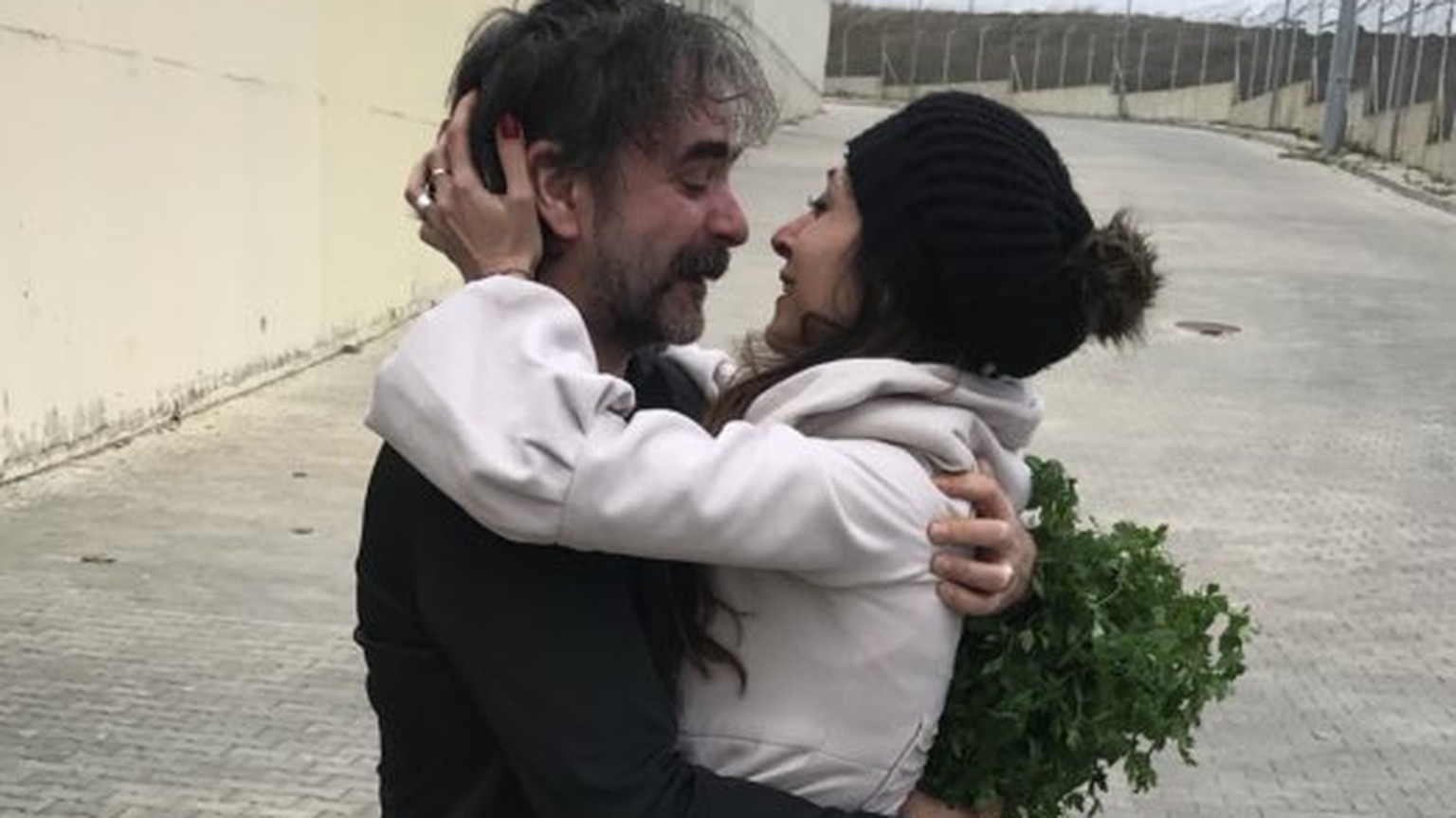 Yücel umarmt seine Frau nach seiner Haftentlassung.