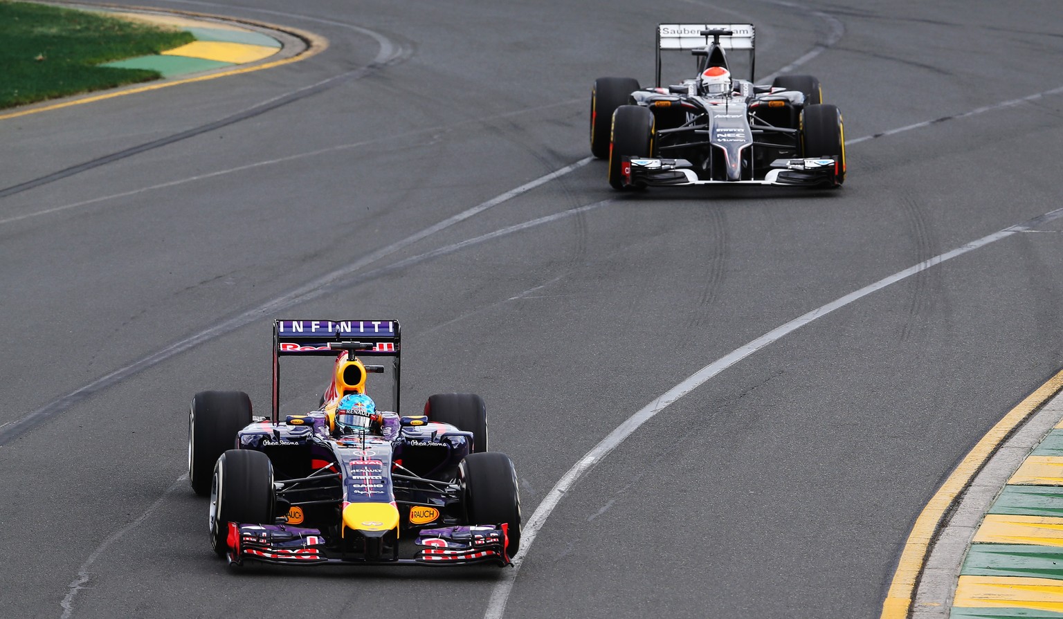 Als er noch nicht Feierabend hatte: Vettel vor Sauber-Pilot Sutil.