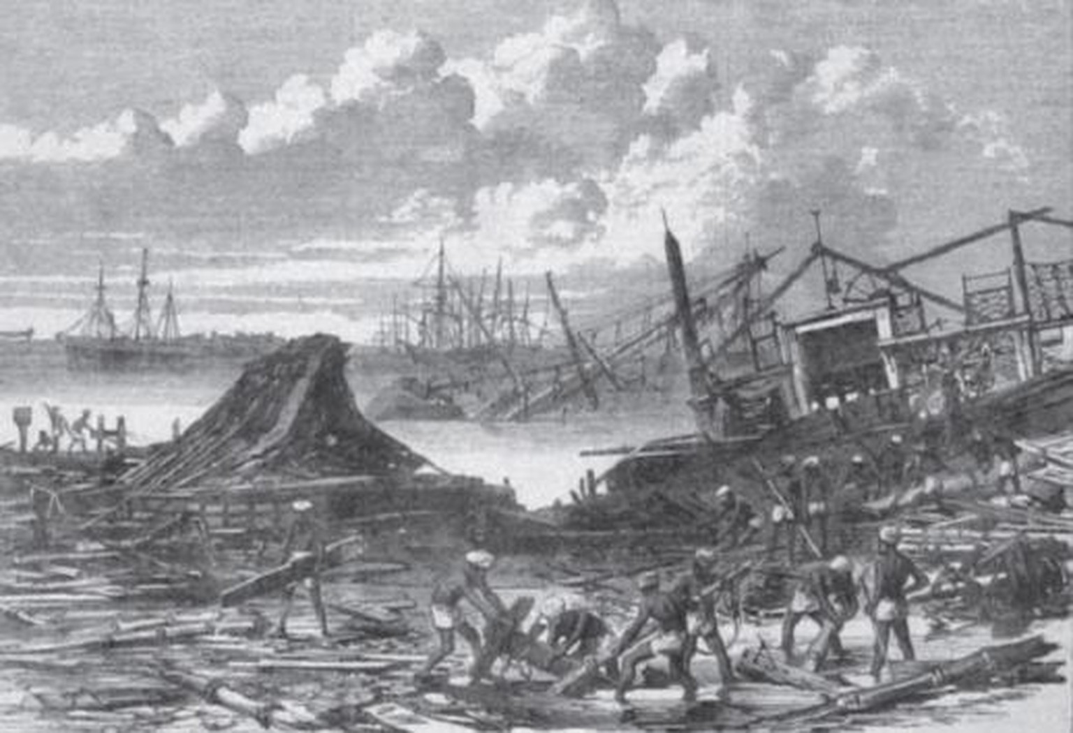 Im Hafen von Kalkutta wurden acht englische Schiffe zerstört.