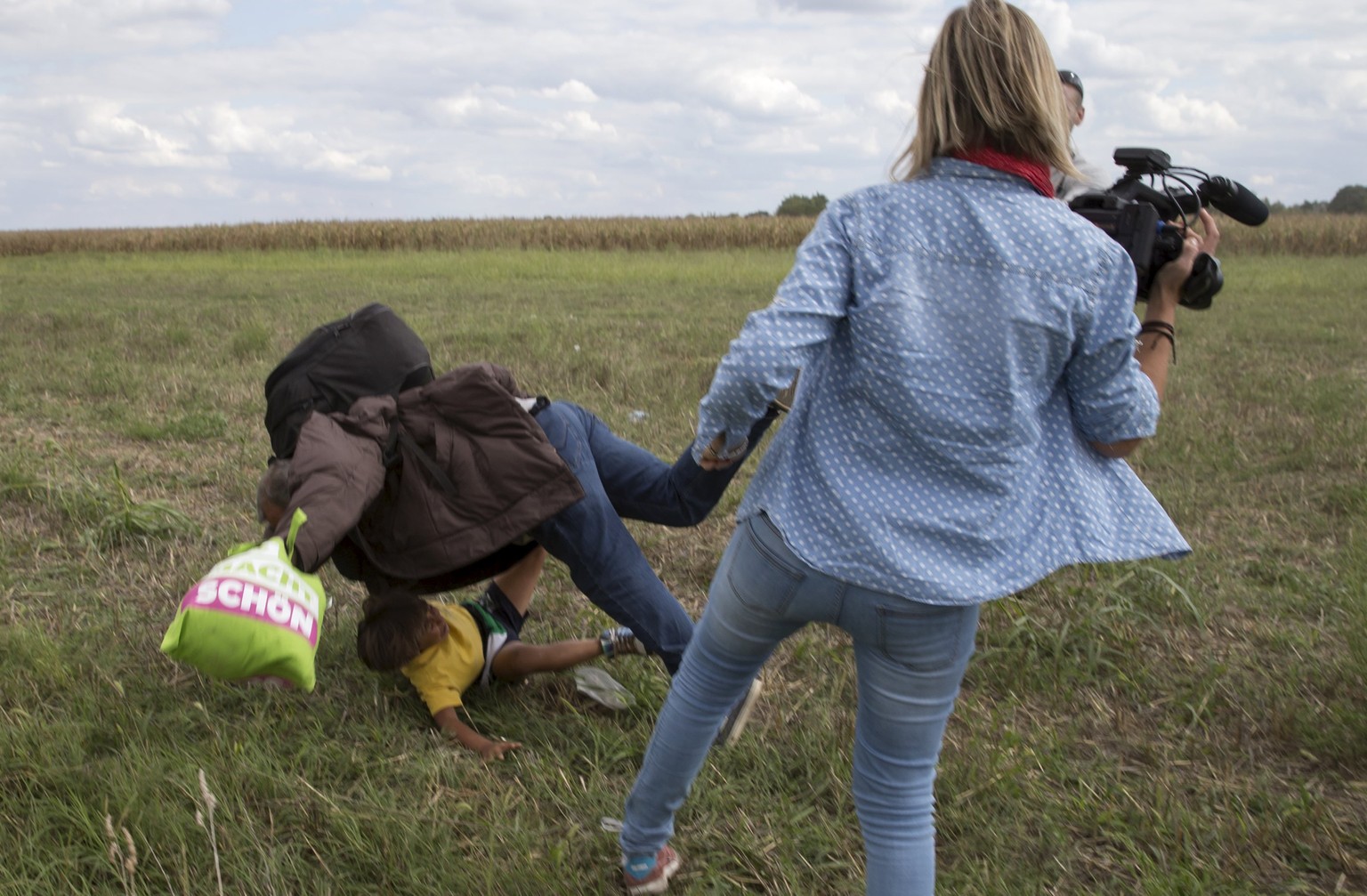 Ein Bild, das die Flüchtlingskrise prägte: Eine ungarische Kamerafrau tritt einen syrischen Flüchtling.