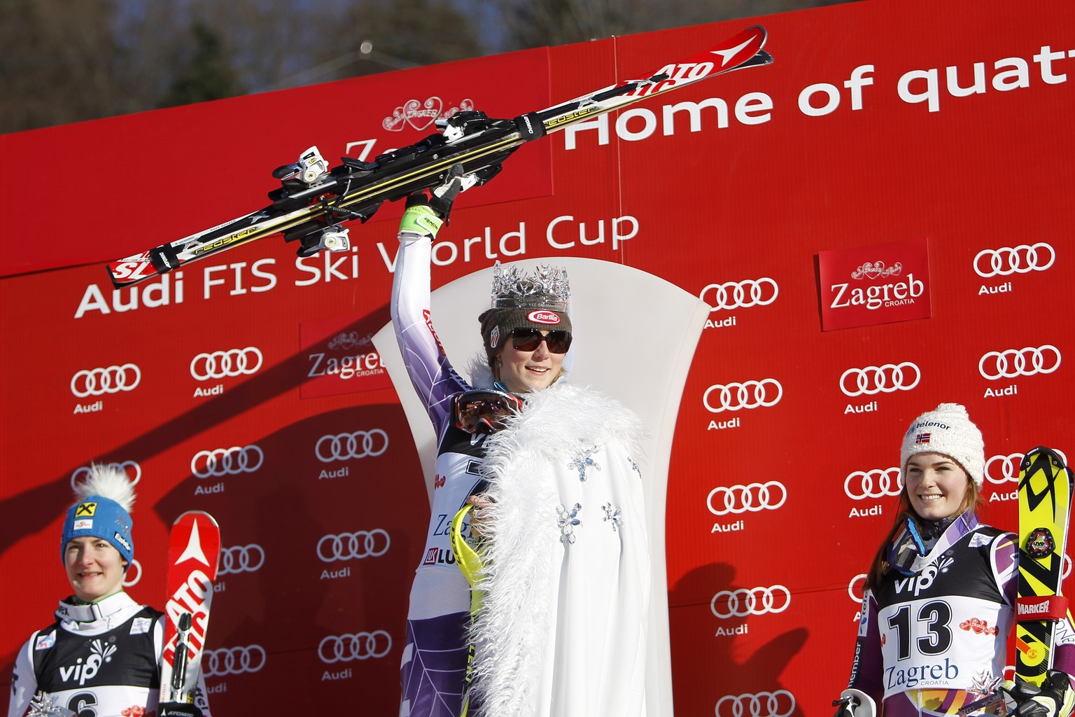 Mikaela Shiffrin freut über sich ihren Sieg in Zagreb.