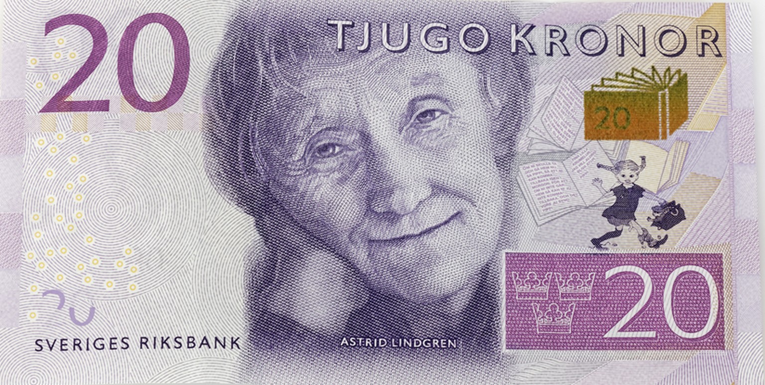 102 Prozent Steuern: Lindgren auf der schwedischen 20-Kronen-Banknote.