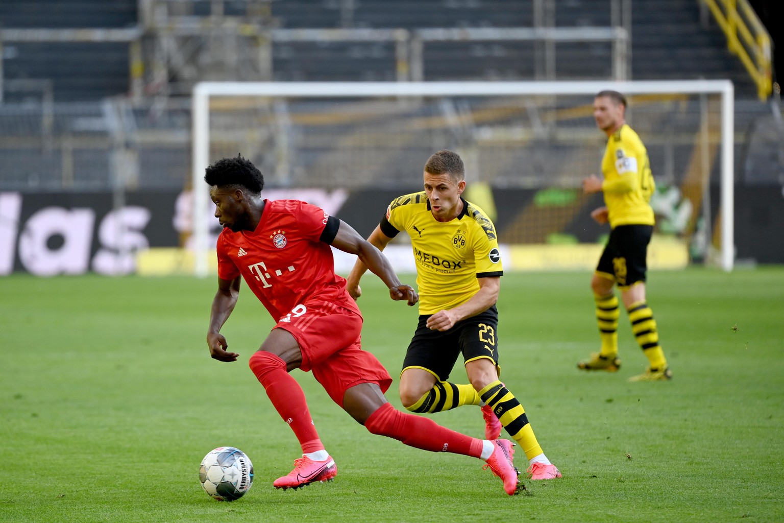 Alphonso Davies im Zweikampf gegen Thorgan Hazard.