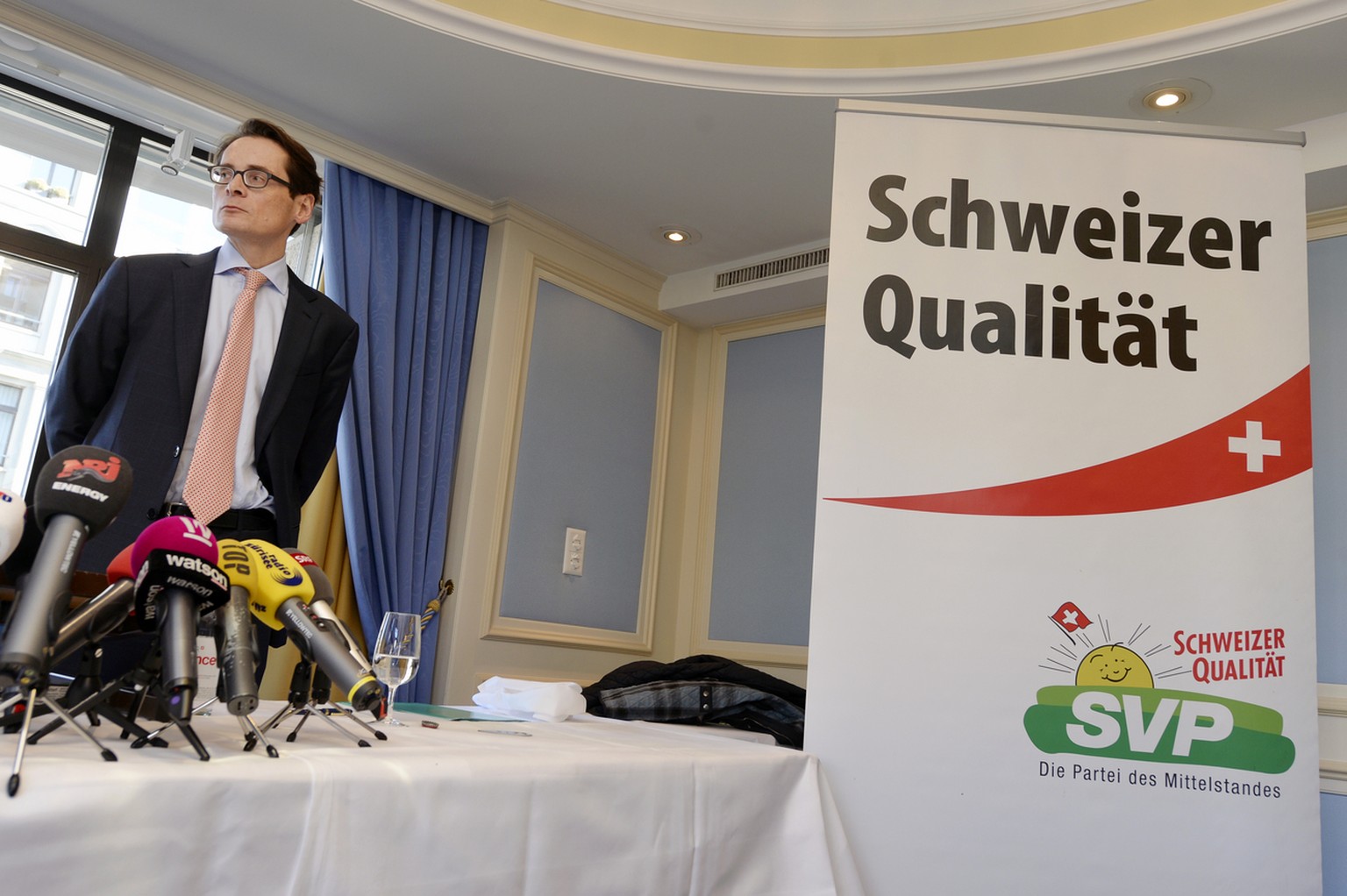 Roger Köppel an einer Pressekonferenz im Februar 2019.