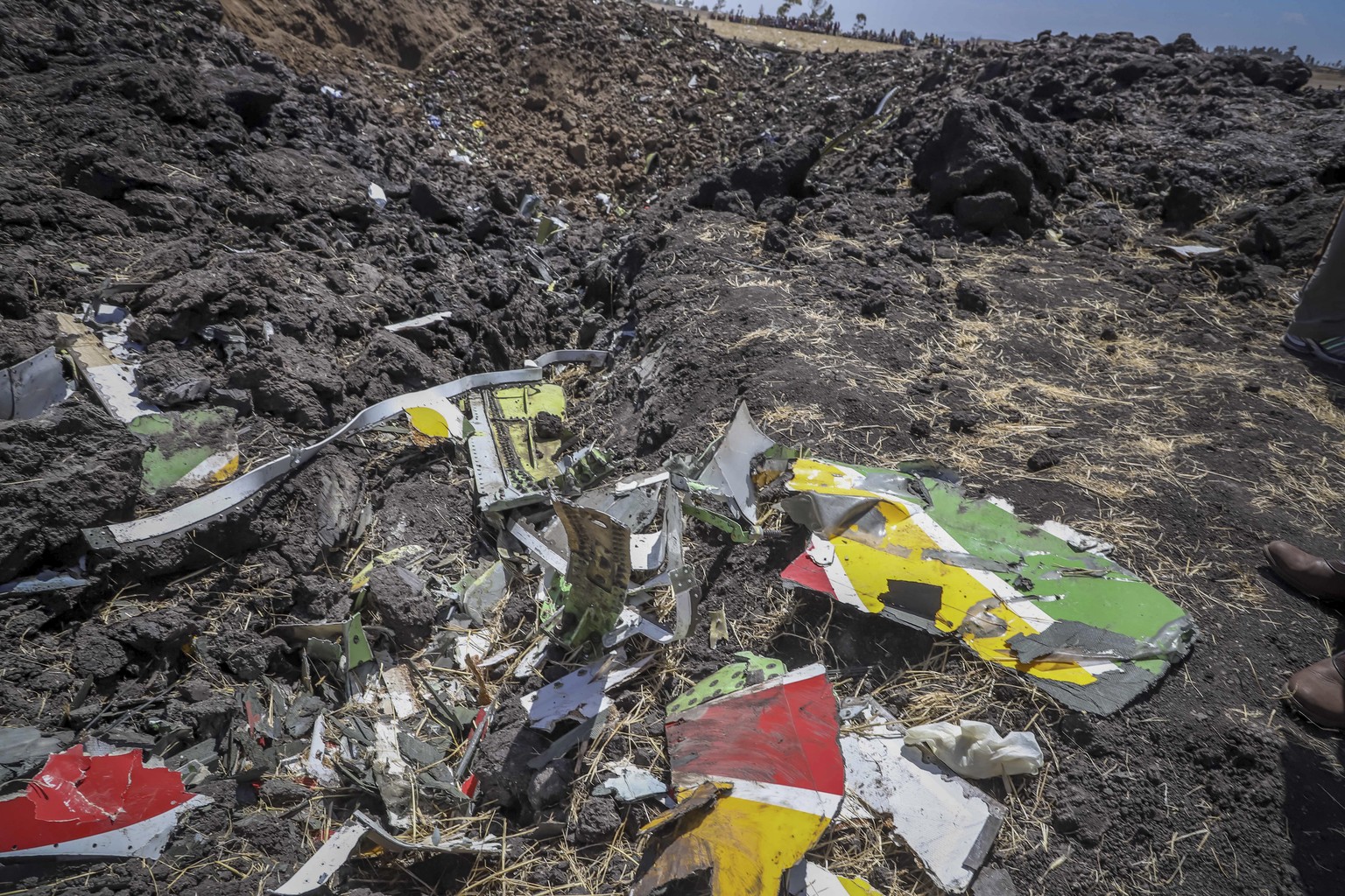 Wrackteile der abgestürzten Maschine von Ethiopian Airlines.