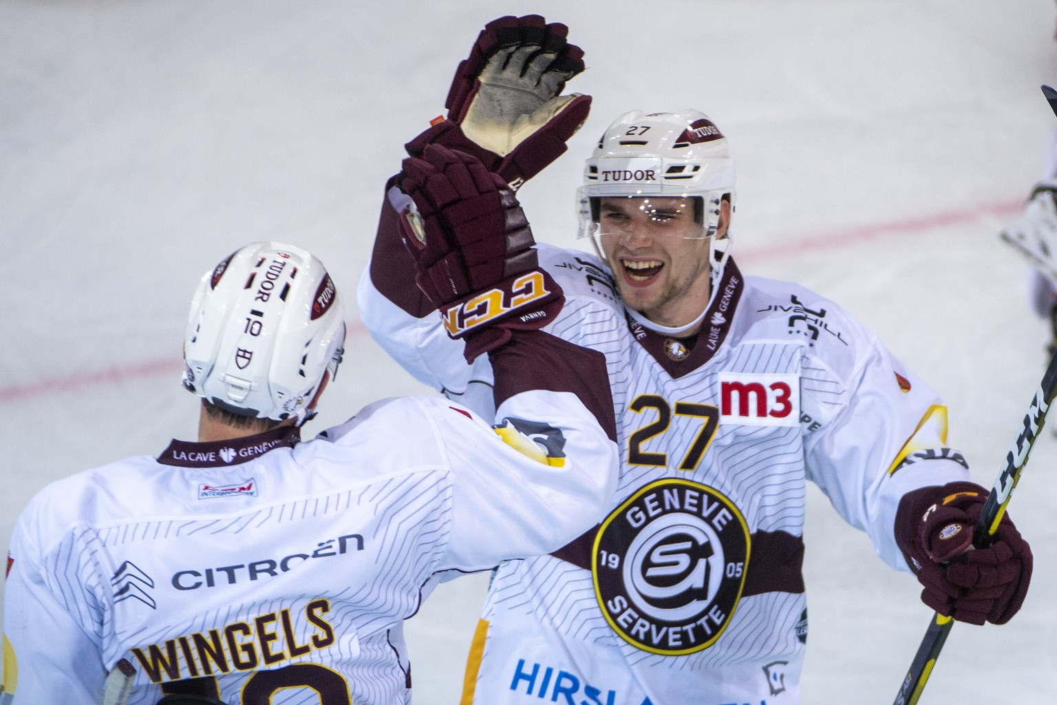Deniss Smirnovs jubelt mit Tommy Wingels.