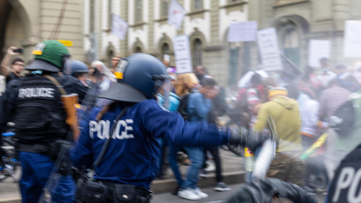 Reizstoffeinsatz aus nächster Nähe und in Mitten einer Menschenmenge fotografisch dokumentiert.