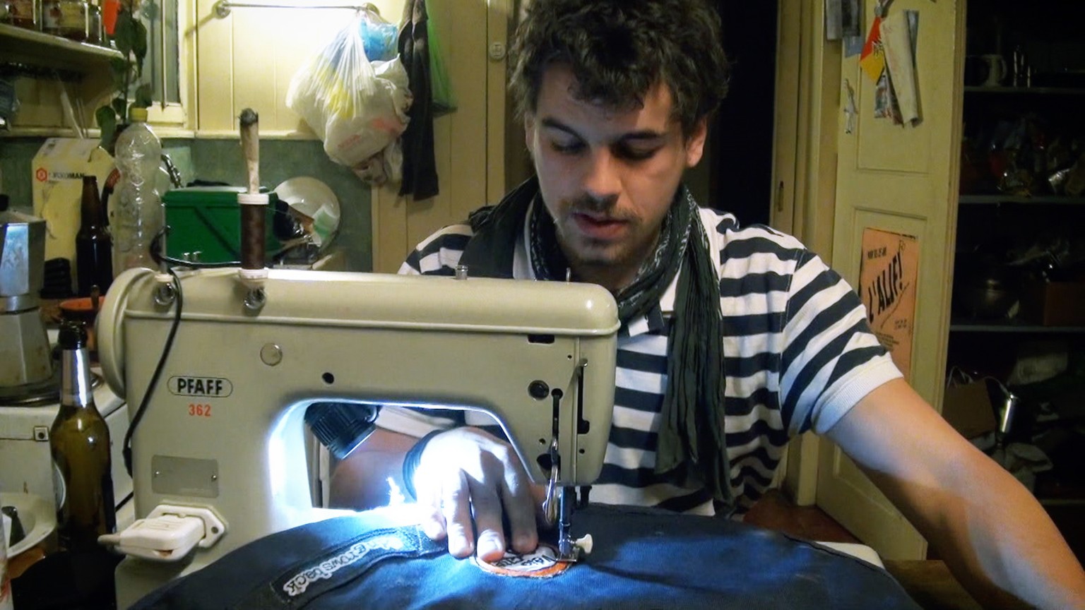 Man beachte die verlängerte Fadenspule des Velokuriers.