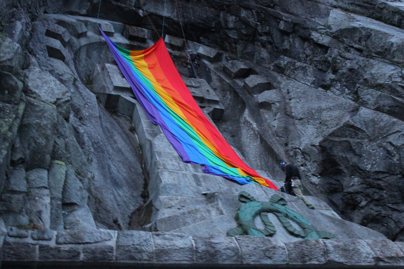 Regenbogenfahne beim Suworow-Denkmal.