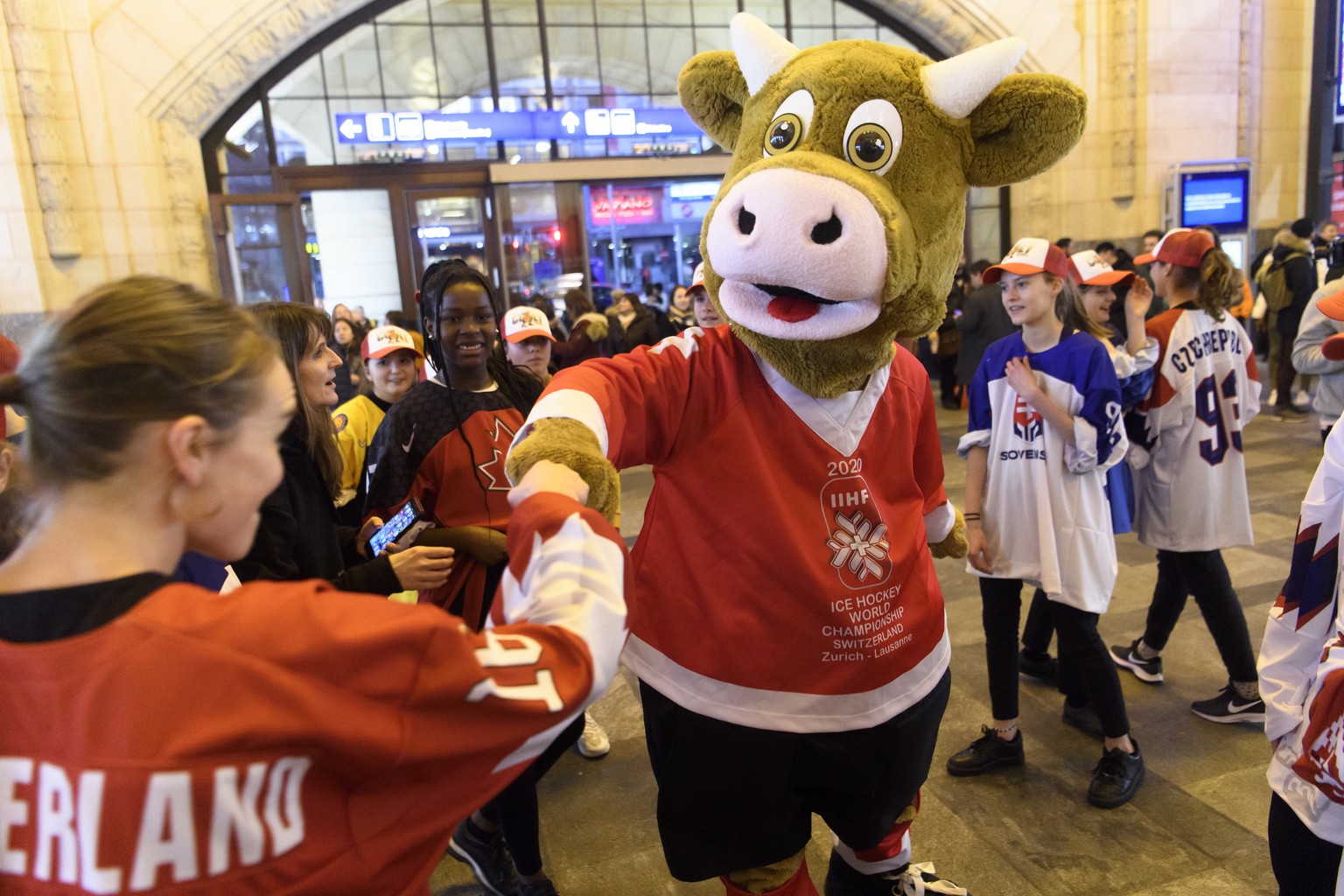 WM-Maskottchen Cooly auf Tuchfühlung mit den Fans – ein Bild, das man im Mai kaum sehen wird.