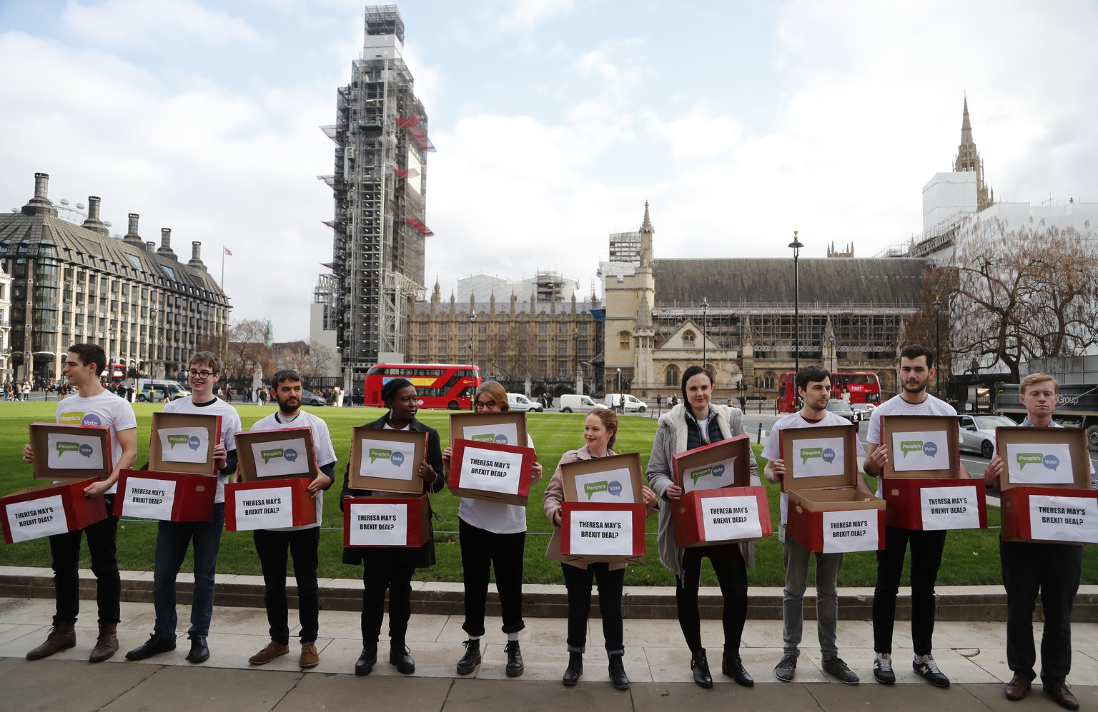 Aktivisten demonstrierten am Montag vor dem Parlament für eine zweite Brexit-Abstimmung.