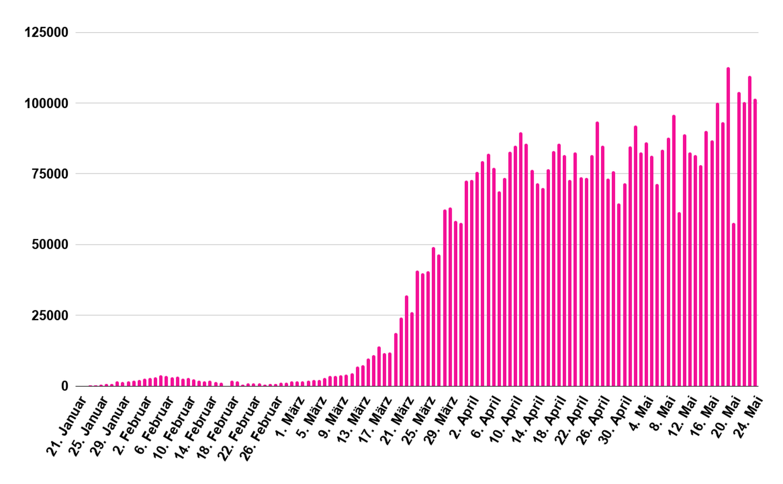 So viele neue Corona-Fälle werden weltweit täglich der WHO gemeldet.