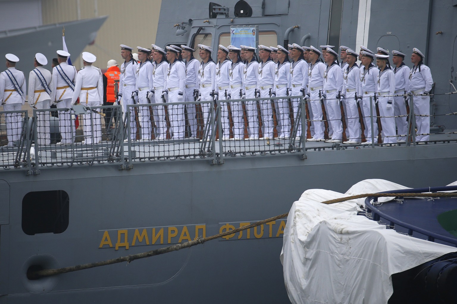 Russische Matrosen auf einem U-Boot.