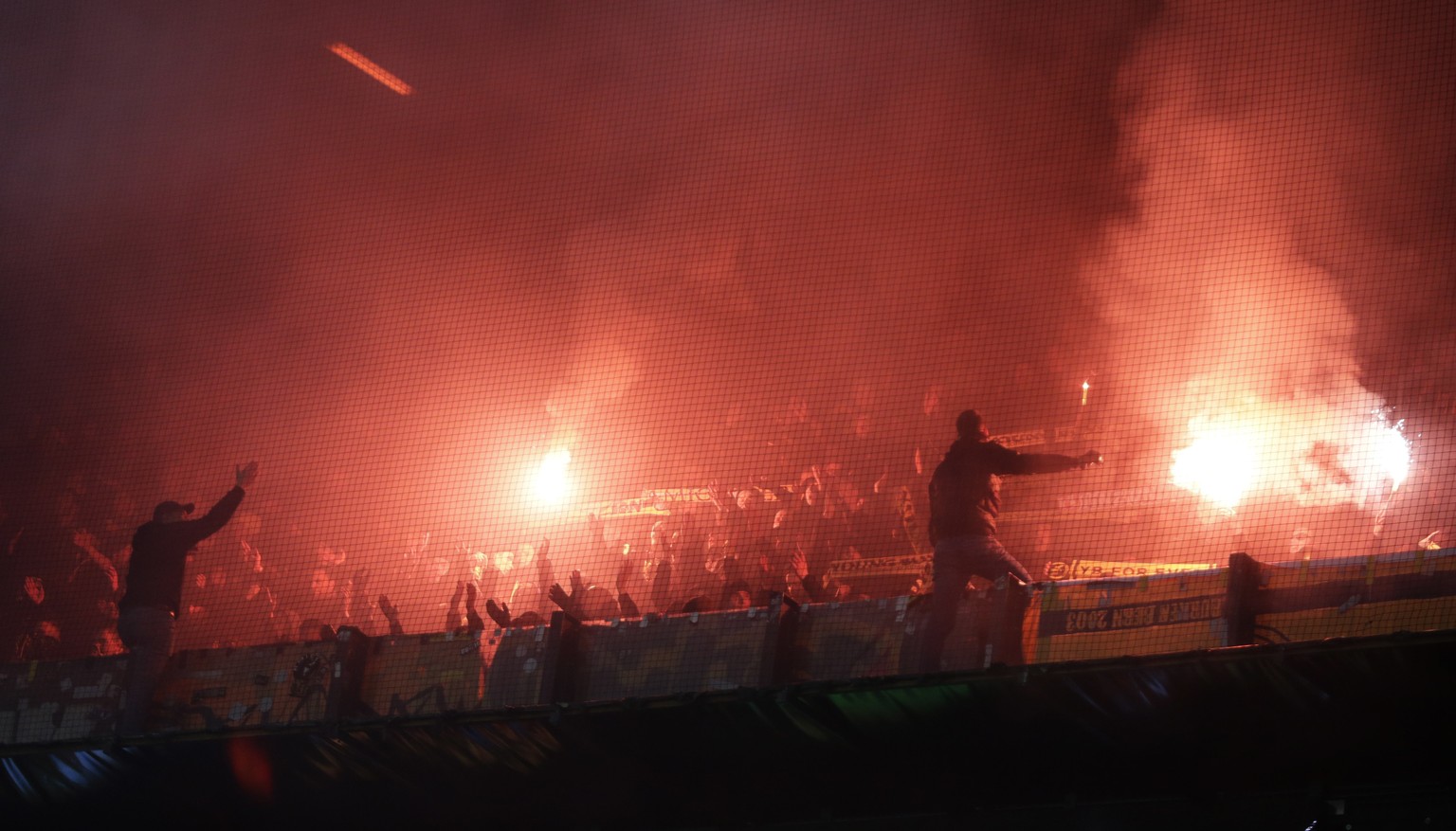 Die YB-Fans zünden in Rotterdam ein Feuerwerk.