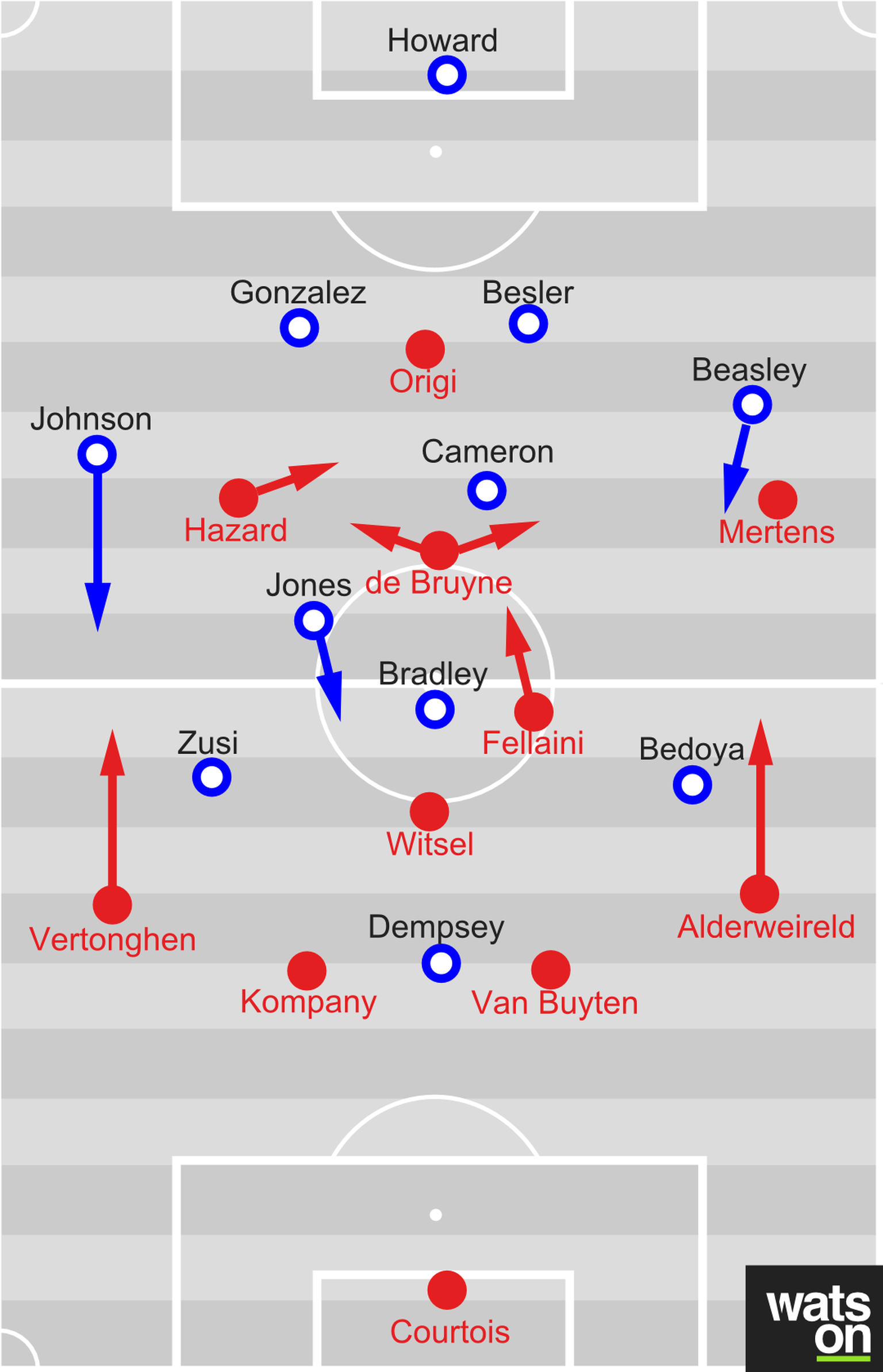 In der Schlussviertelstunde des regulären Spiels standen dieAmerikaner nicht kompakt. Belgien konnte riesige Lücken auf dem Flügel und vor der Abwehrbespielen.
