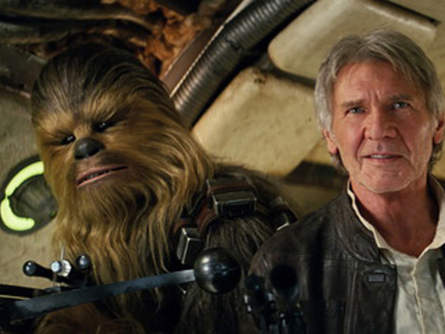Darsteller Peter Mayhew als Chewbacca und Schauspieler Harrison Ford in «Star Wars: The Force Awakens.»