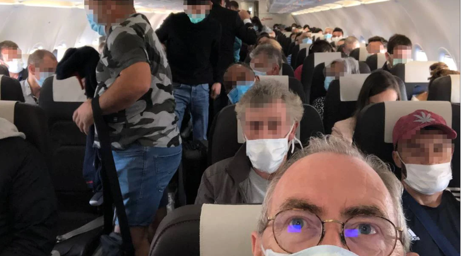 Vollgepackt mit Mundschutzmasken, die das Reisen hygienischer machen - hinein ins Corona-Feeling! Laut Swiss halten sich praktisch alle Passagiere an die Masken-Empfehlung. Pflicht ist der Mundschutz hingegen nicht.