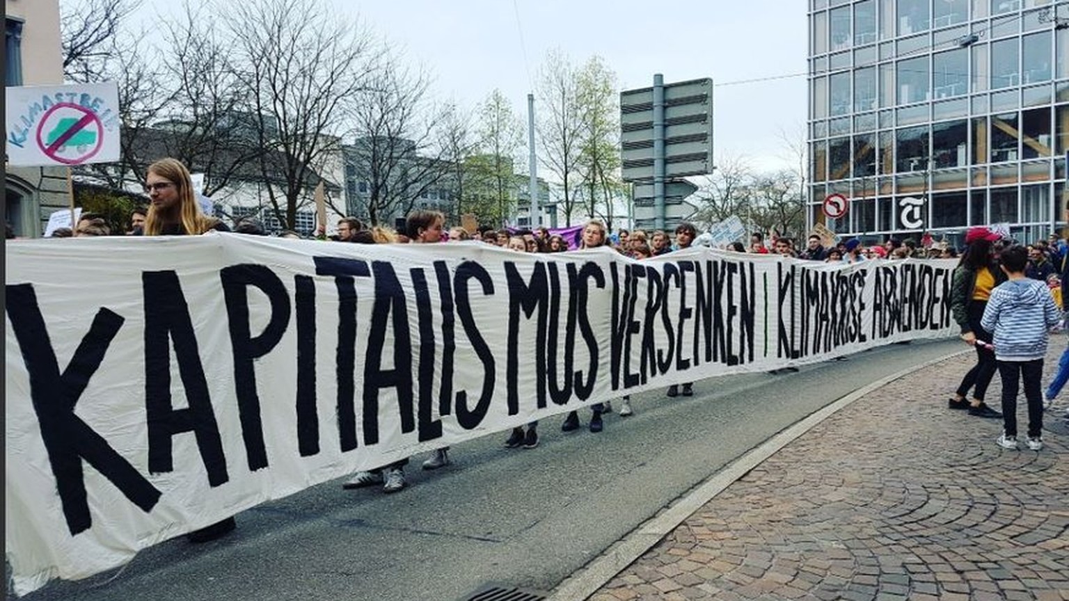 Ein Plakat, das für Schlagzeilen sorgte: Junge Sozialisten an einer Klimademonstration in Zürich.